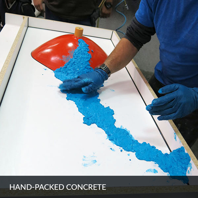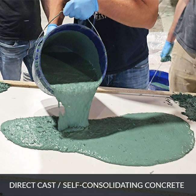 UltraFlow is a fine, off-white powder. Some black specs may be evident. This is completely normal and does not affect the appearance of the concrete. A tiny amount of UltraFlow is used for even the most dramatic effects in your concrete countertop mix.